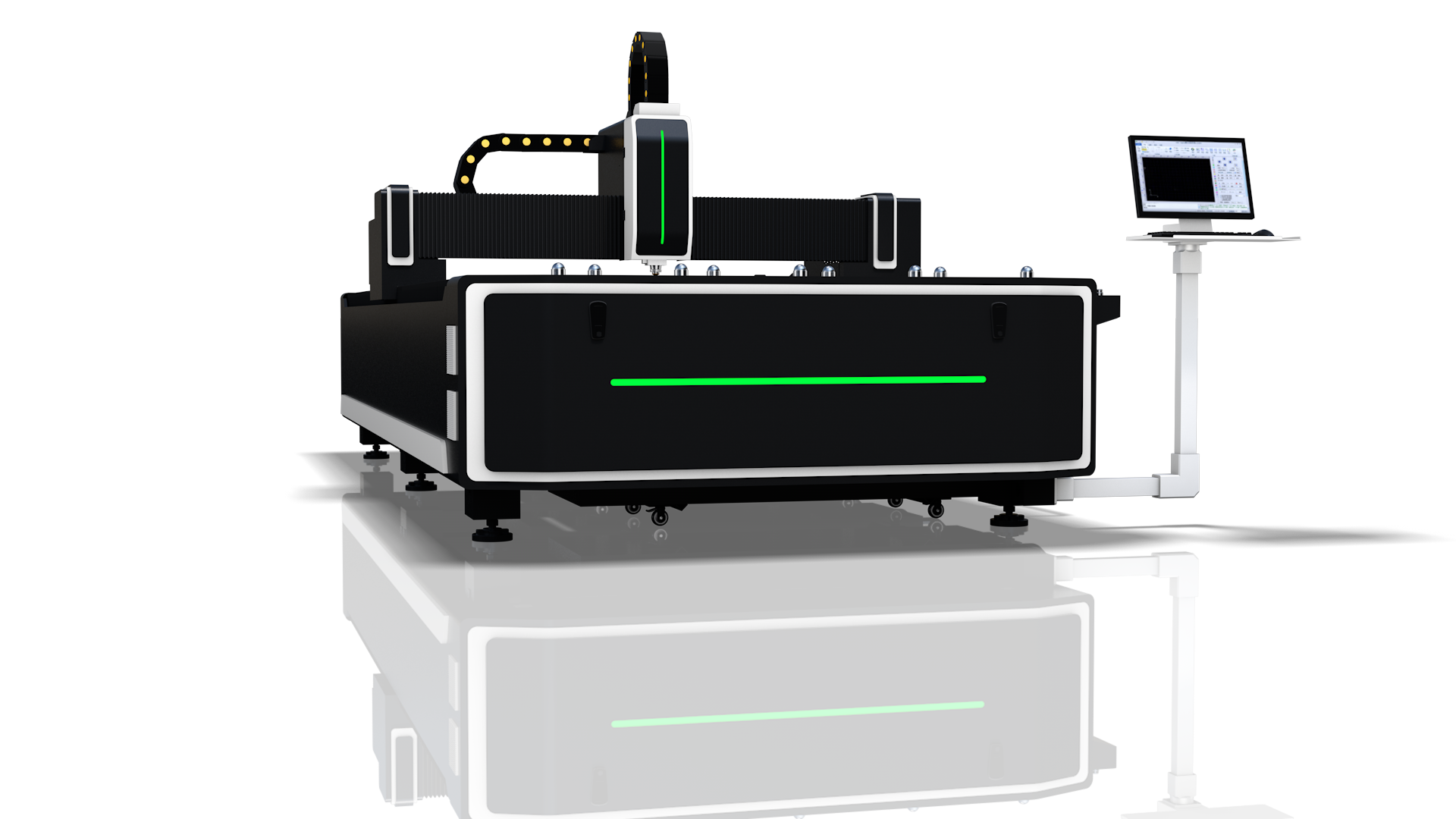 3、高強度鋁橫梁,強度高、抗變形能力強,優化減輕重量,加快運動速度,大幅提高加工速度。