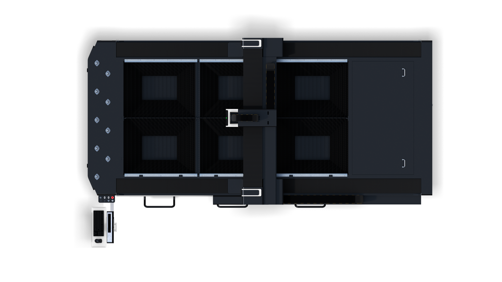 采用齒條雙伺服驅動結構,高慣性大力矩電機,加速度高,使設備可高速高精運行