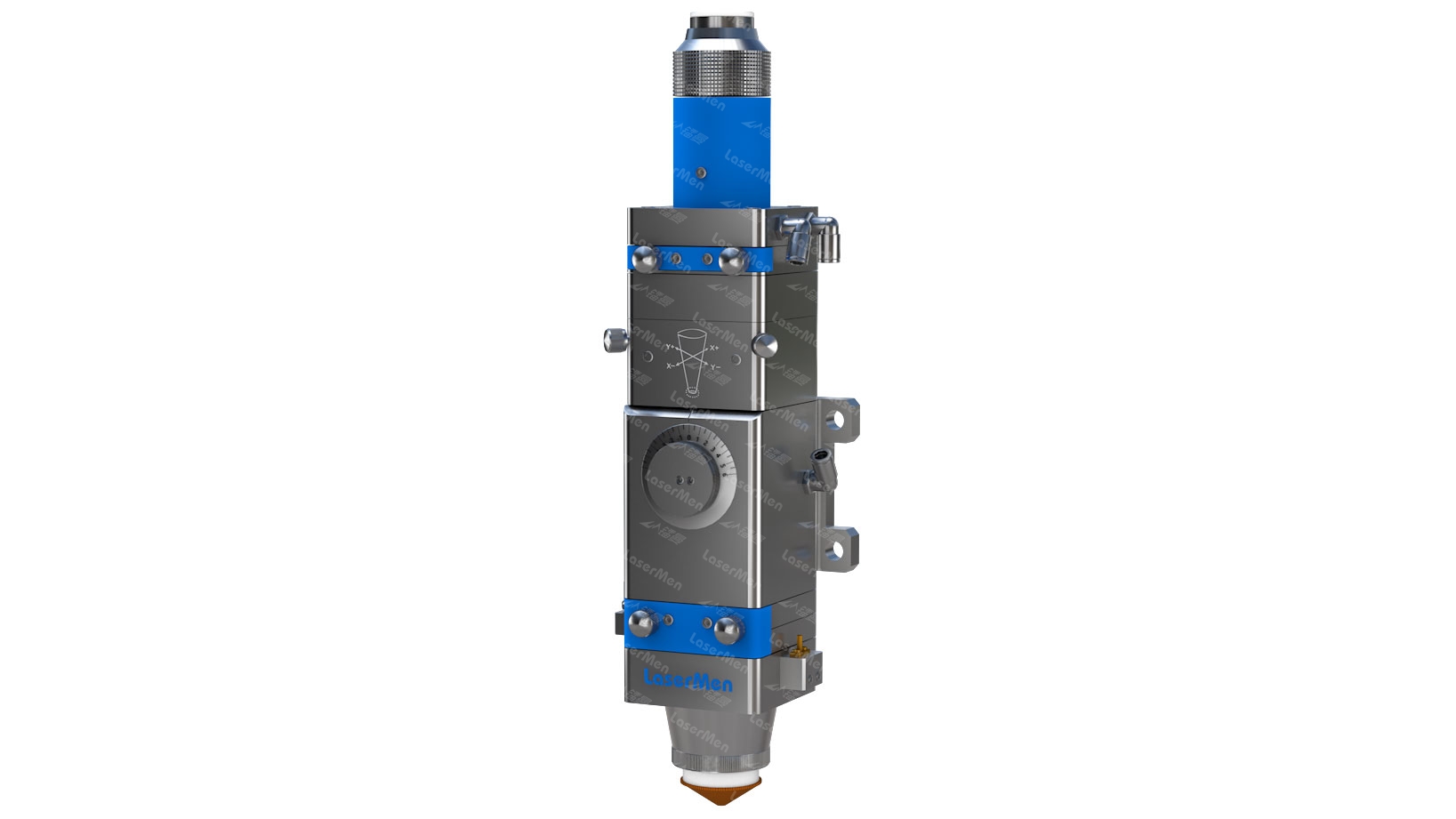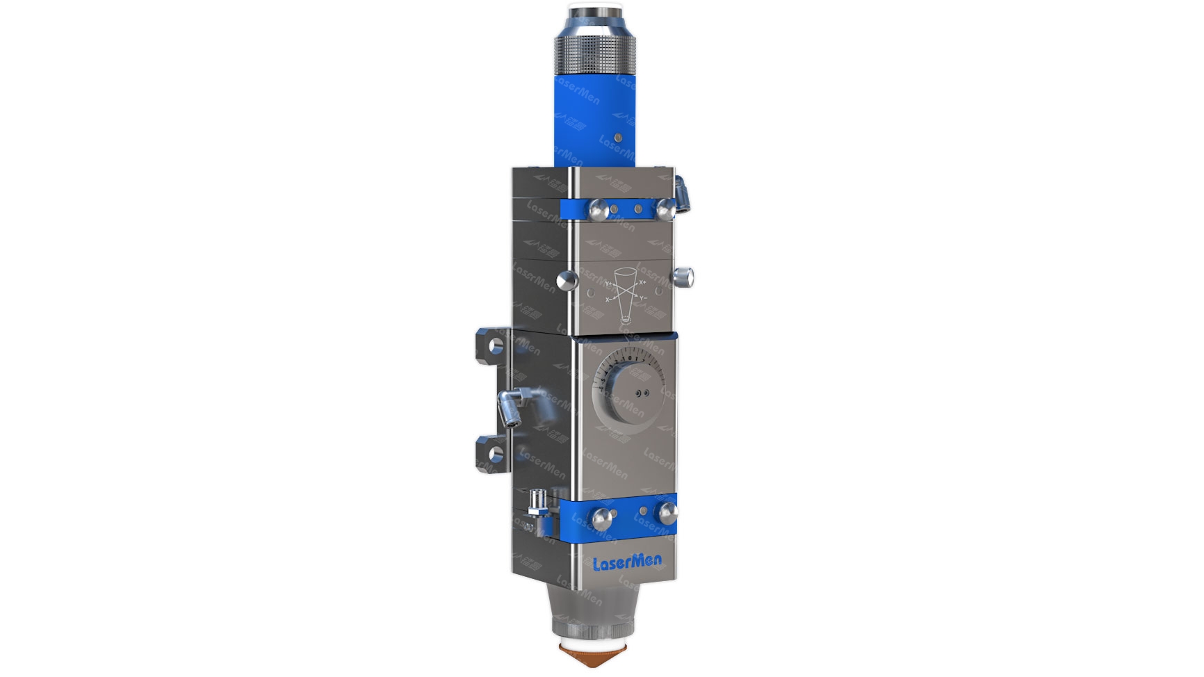 光纖激光切割機(jī)切割頭可分為三個(gè)部分:噴嘴、聚焦透鏡與聚焦跟蹤系統(tǒng)。